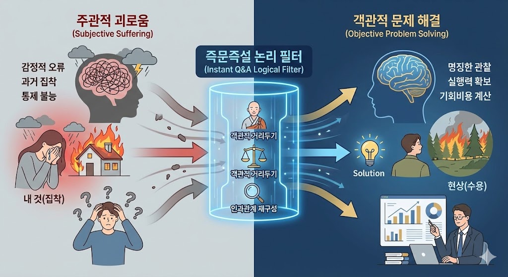 반복되는 고민과 괴로움에서 벗어나고 싶다면 법륜스님의 '즉문즉설'에 담긴 논리적 프레임워크에 주목하십시오. 주관적 집착을 객관적 거리두기로 전환하여 불필요한 고민을 즉각 삭제하는 의사결정 알고리즘과 실무적 적용법을 나율의 인사이트랩에서 분석합니다.직장 생활과 비즈니스 현장에서 우리는 수많은 선택과 갈등에 직면합니다. 이때 발생하는 '괴로움'은 단순히 심리적인 문제를 넘어, 냉철한 판단을 방해하고 업무적 기회비용을 발생시키는 치명적인 노이즈입니다. 2026년 현재, 수많은 멘토 중에서도 법륜스님의 '즉문즉설'이 엘리트 직장인들에게 각광받는 이유는 그것이 종교적 위로를 넘어 매우 논리적이고 수학적인 문제 해결 프로세스를 담고 있기 때문입니다.오늘 '나율의 인사이트랩'에서는 법륜스님의 답변 속에 숨겨진 '괴로..