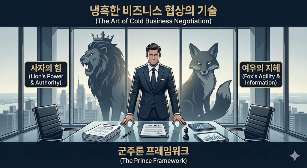 비즈니스 협상은 도덕의 장이 아닌 실리의 각축장입니다. 니콜로 마키아벨리의 '군주론'을 통해 현대 비즈니스 협상에서 승리하기 위한 사자의 힘과 여우의 지혜를 분석합니다. 인간 본성에 대한 냉혹한 통찰을 바탕으로 나에게 유리한 협상 테이블을 설계하는 전략적 프레임워크를 나율의 인사이트랩에서 분석합니다.치열한 비즈니스 전장에서 협상은 매 순간 벌어지는 소리 없는 전쟁입니다. 많은 이들이 '윈-윈(Win-Win)'이라는 이상적인 구호를 외치지만, 현실의 테이블 위에서는 누군가의 이익이 누군가의 양보로 치환되는 제로섬 게임이 빈번하게 발생합니다. 2026년 현재, 불확실성이 극대화된 경제 환경 속에서 전문직 종사자와 기업가들에게 필요한 것은 따뜻한 낙관론이 아니라, 상대를 꿰뚫어 보는 냉혹한 리얼리즘입니다. 오..